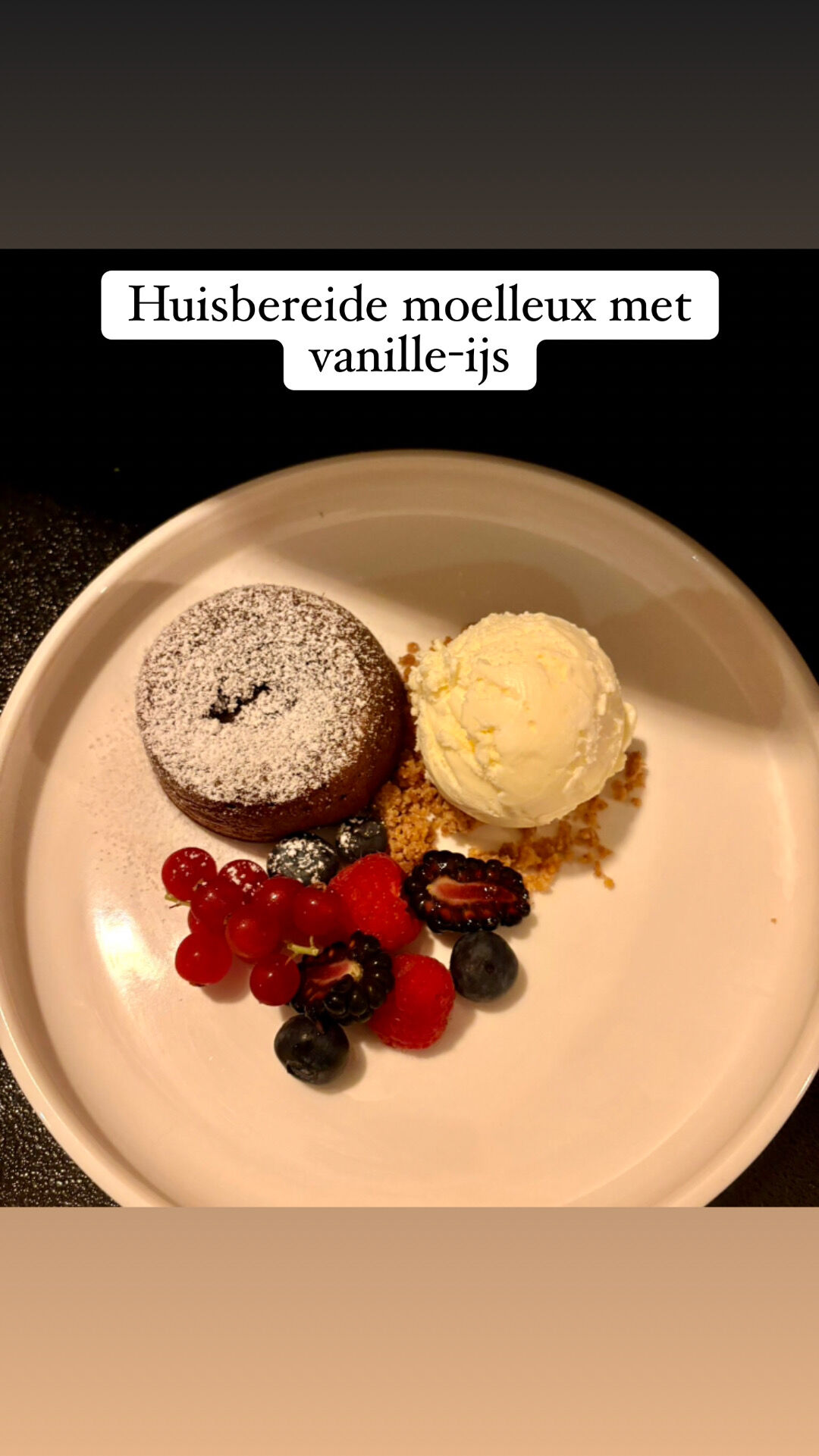 * dessert: dame blanche of Irish coffee